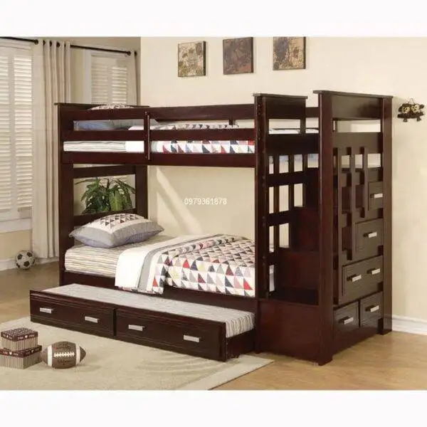 Dòng 3 tầng có ngăn kéo, giường phụ màu gỗ